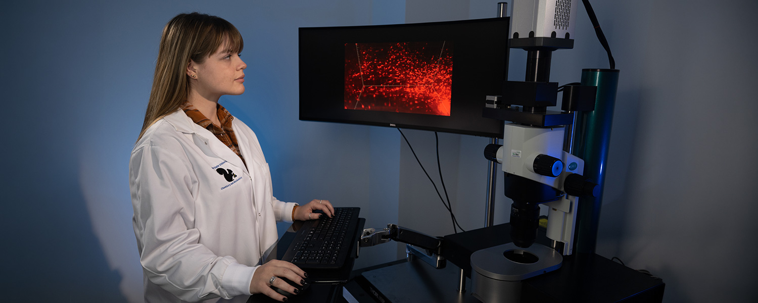 "The Blaze microscope is important to my research because it allows for 3D imaging and mapping of the interconnected hypothalamic circuitry that is ultimately responsible for the regulation of mammalian reproduction,” said Alyssa Novak, a fourth year Ph.D. candidate in the Integrative Physiology and Neurobiology program. “This technology will allow me to visualize this circuitry both under physiological conditions and in conditions of infertility, which can provide insights about specific changes in the brain that can alter reproductive function.”
