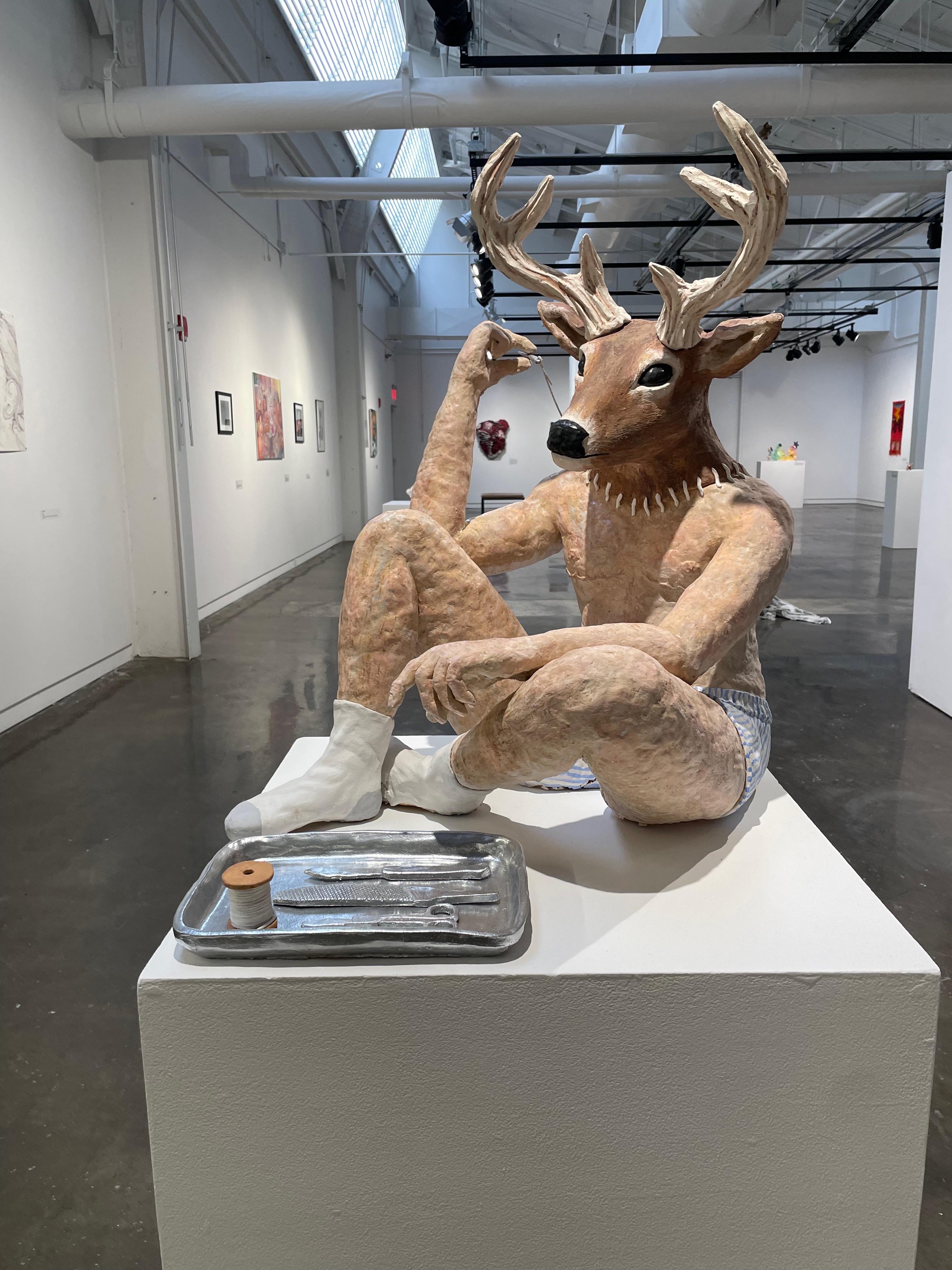 Vic Williams' "Tailored Alterations" was awarded Best in Show for undergraduate students, whose winning artwork featured elements of ceramic, ceramic underglaze, glaze, string and spray paint.