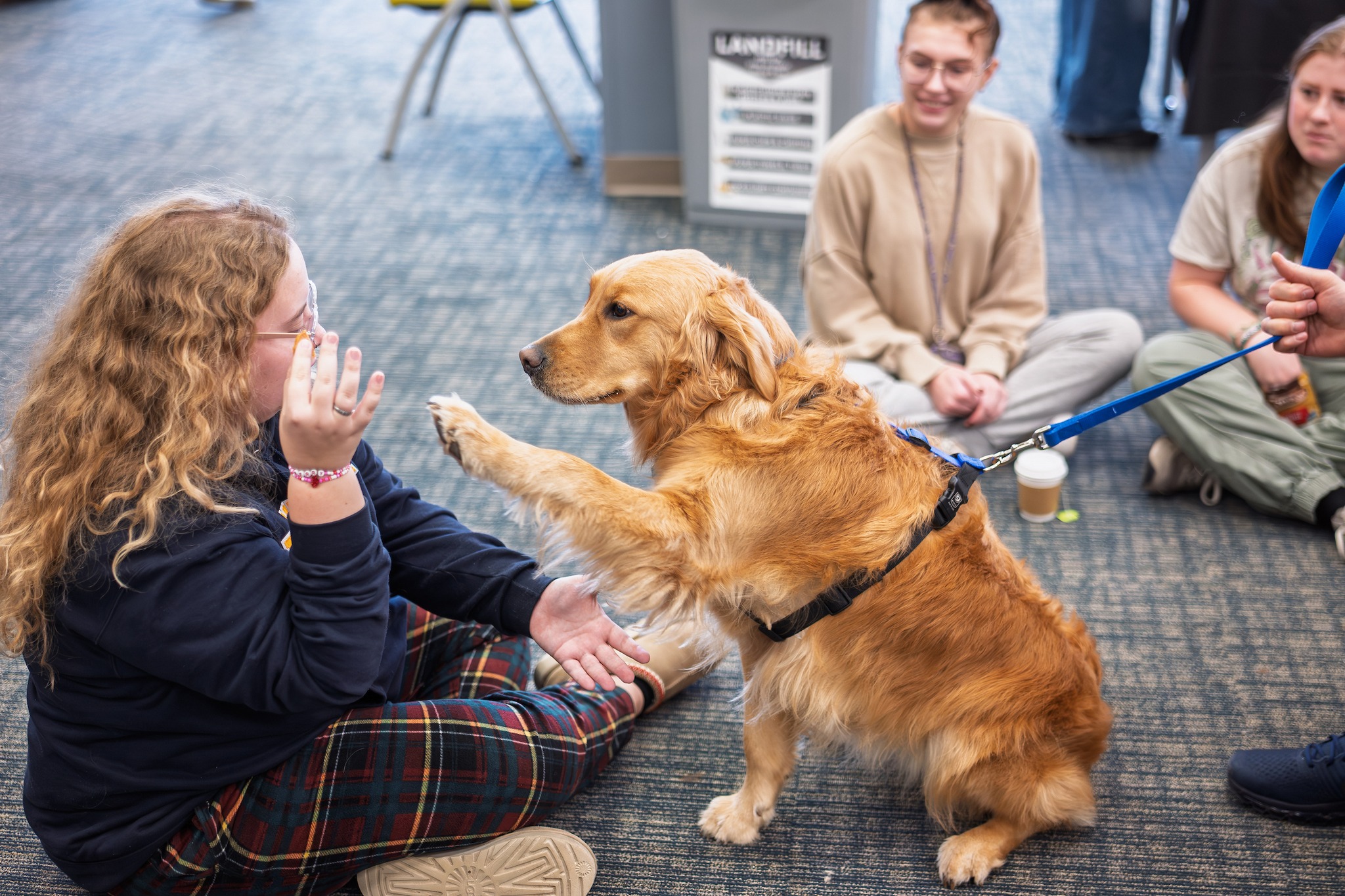 The Stress-Free Zone in the Kent State University Library's Harrick Garden Room has become a tradition during Finals Week in Fall and Spring Semester.